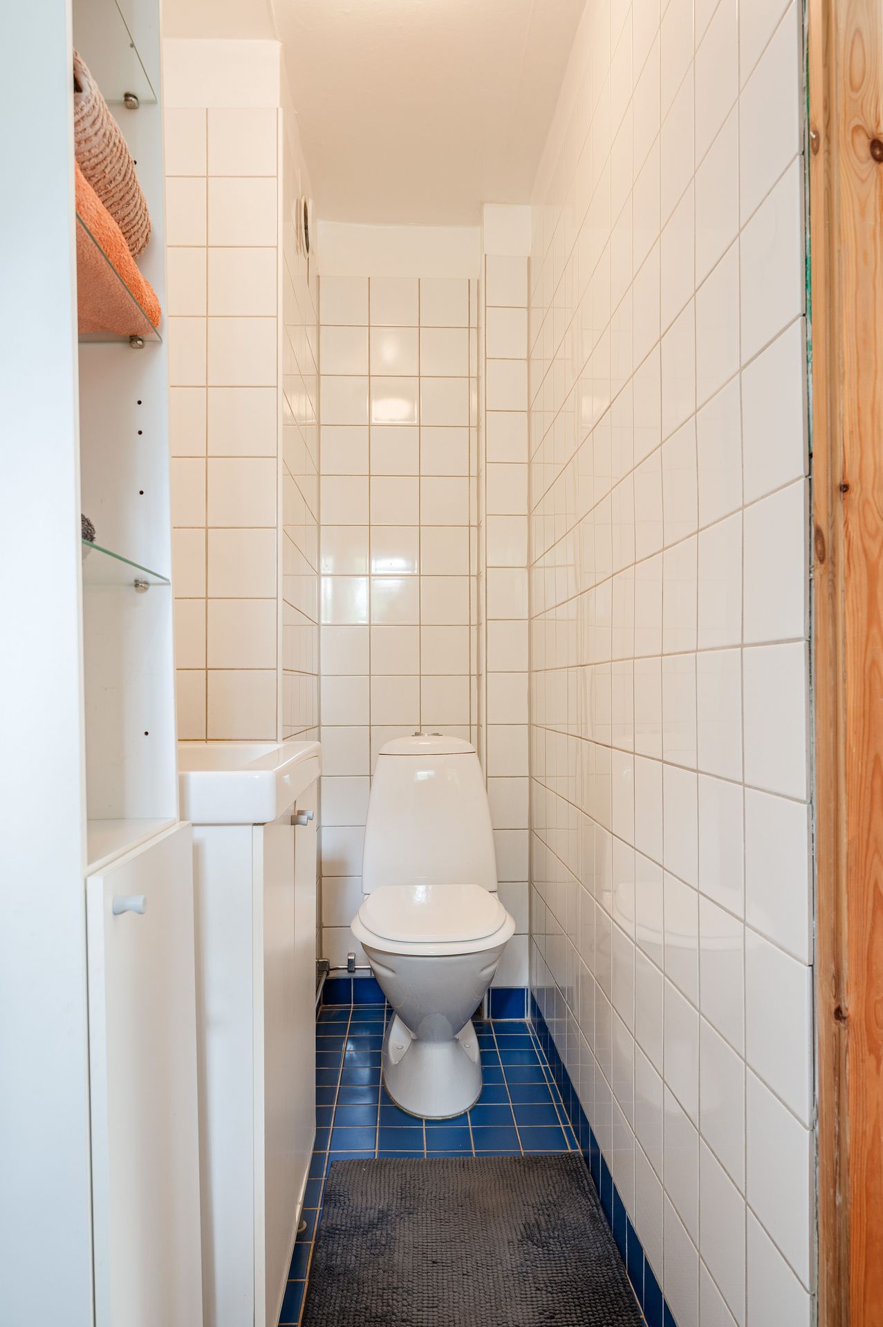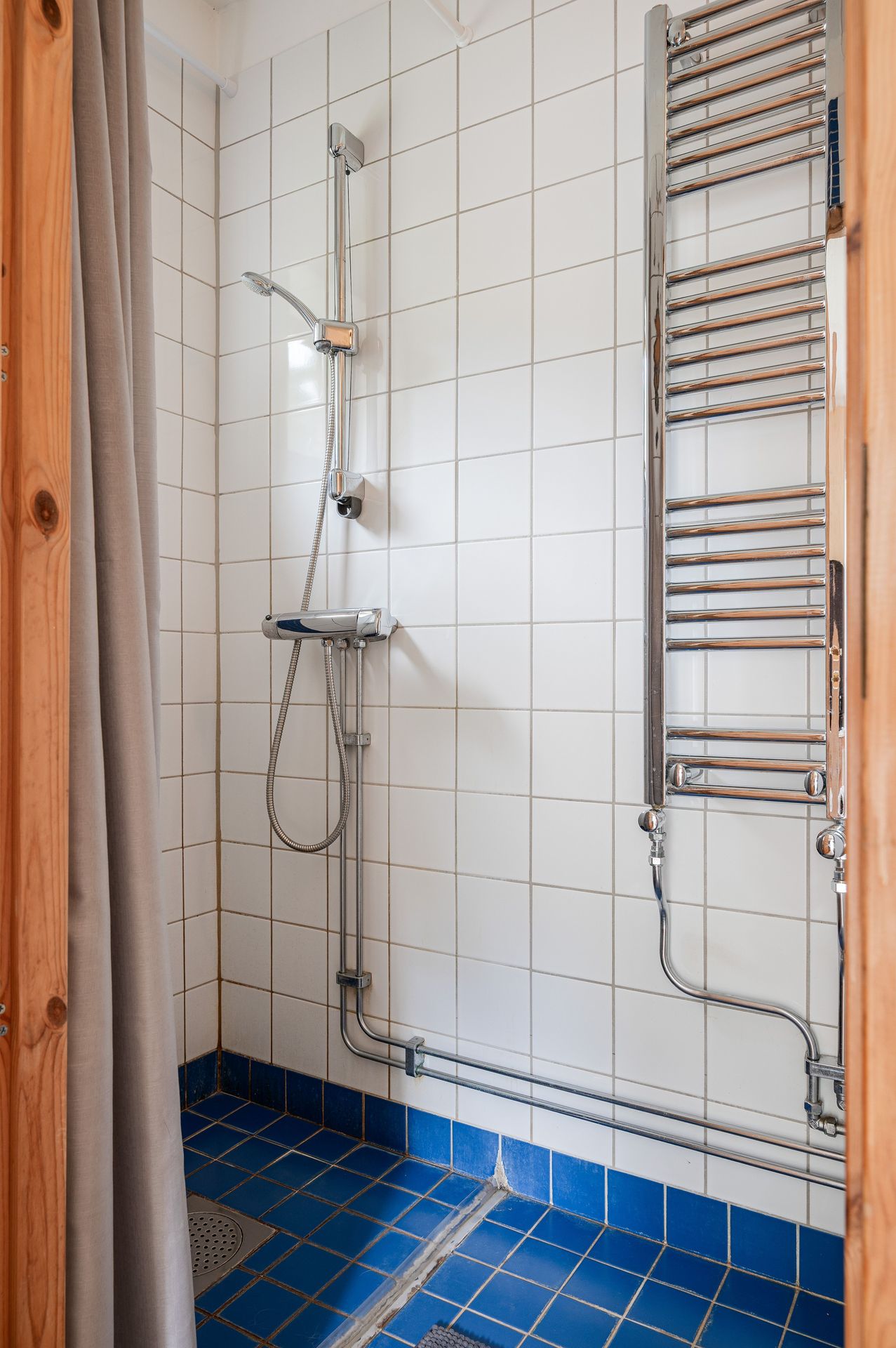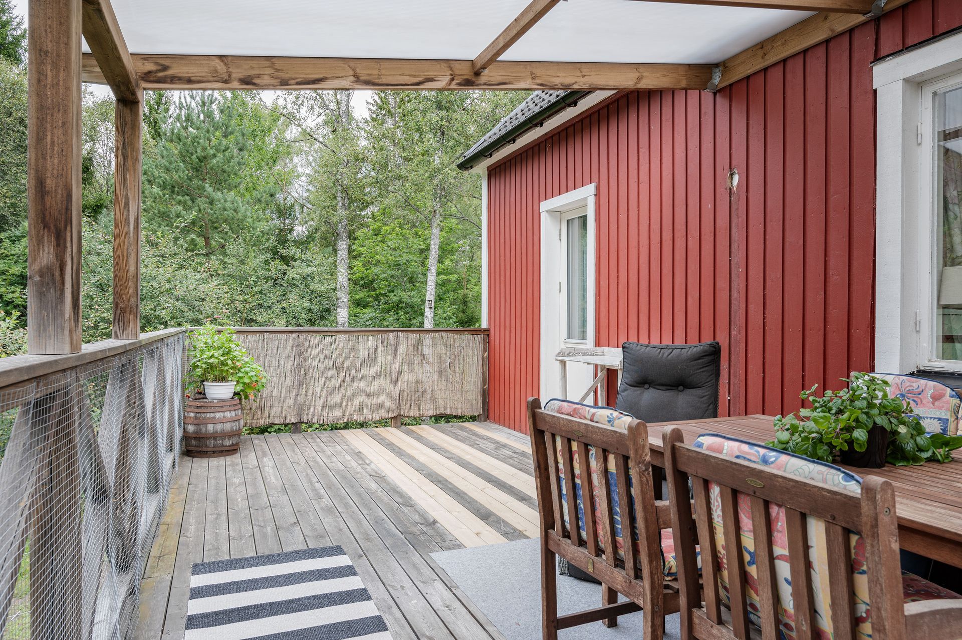 Dränering är utförd på 1990-talet. - Byggnadssätt: Fönster: 2-glasfönster. Skorstenstyp: Murad skorsten. Utvändiga plåtarbeten: Plåt. Avlopp: Enskilt avlopp. Föreläggande finns om att nytt avlopp måste anläggas. Frist till 2026-02-19. Vatten: Djupborrad brunn, 2017. Vattenprov finns. Taktyp/takbeklädnad: Betongpannor. Grund: Plintar. Stomme: Trä. Fasadtyp: Träfasad. Bjälklag: Trä.