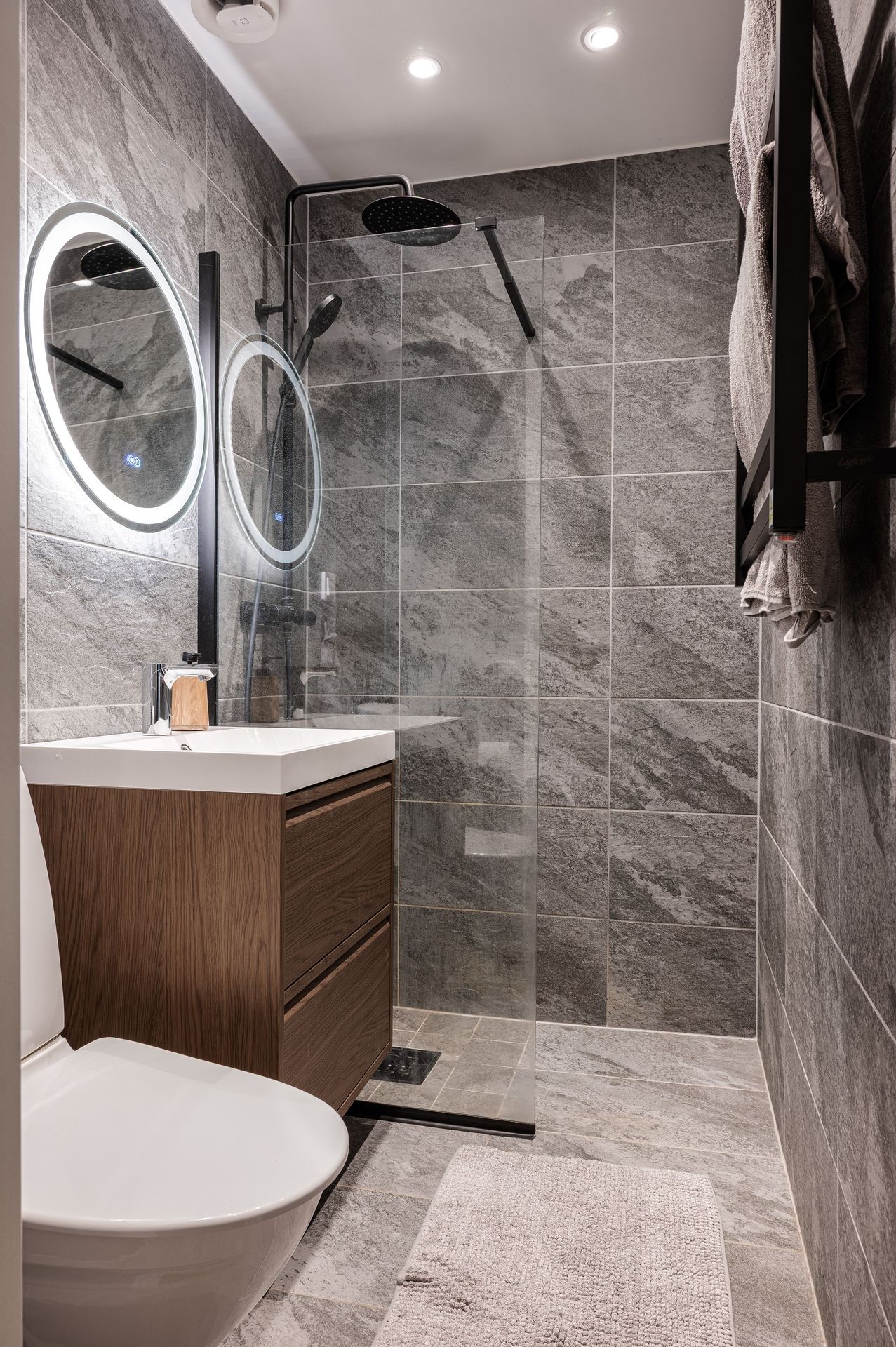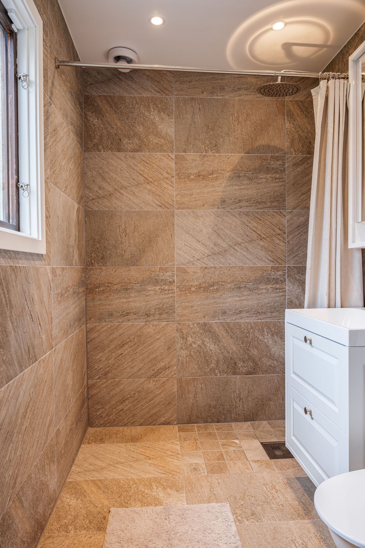 Nyrenoverat badrum med duschplats