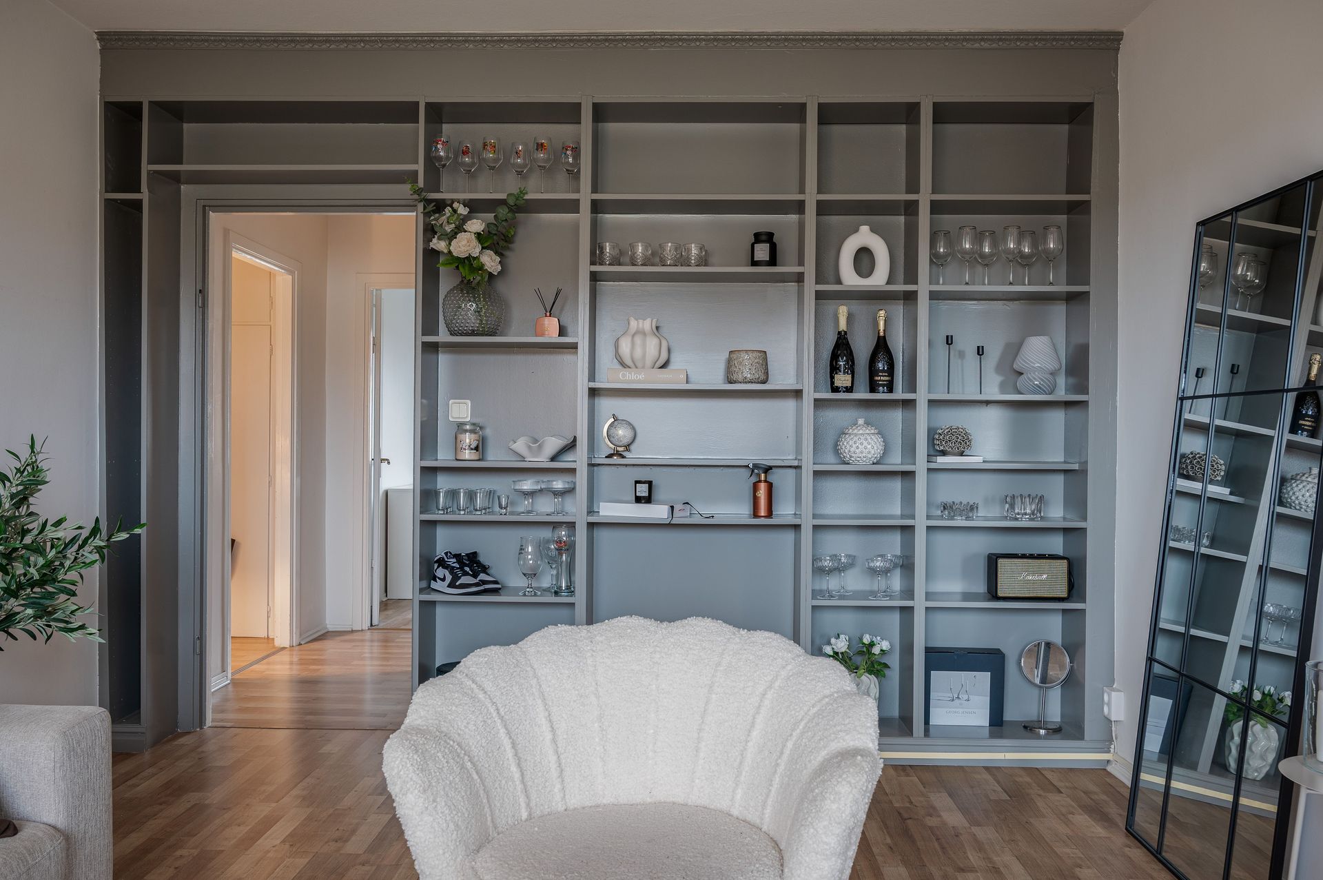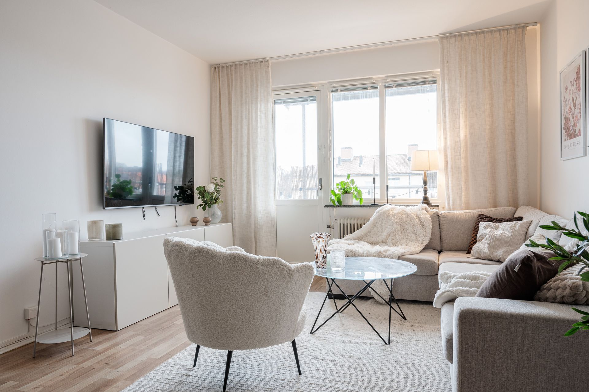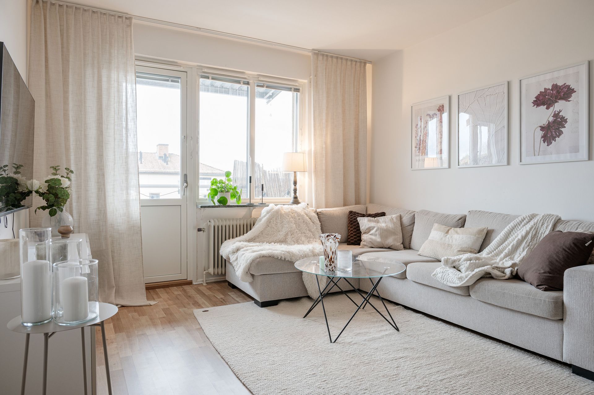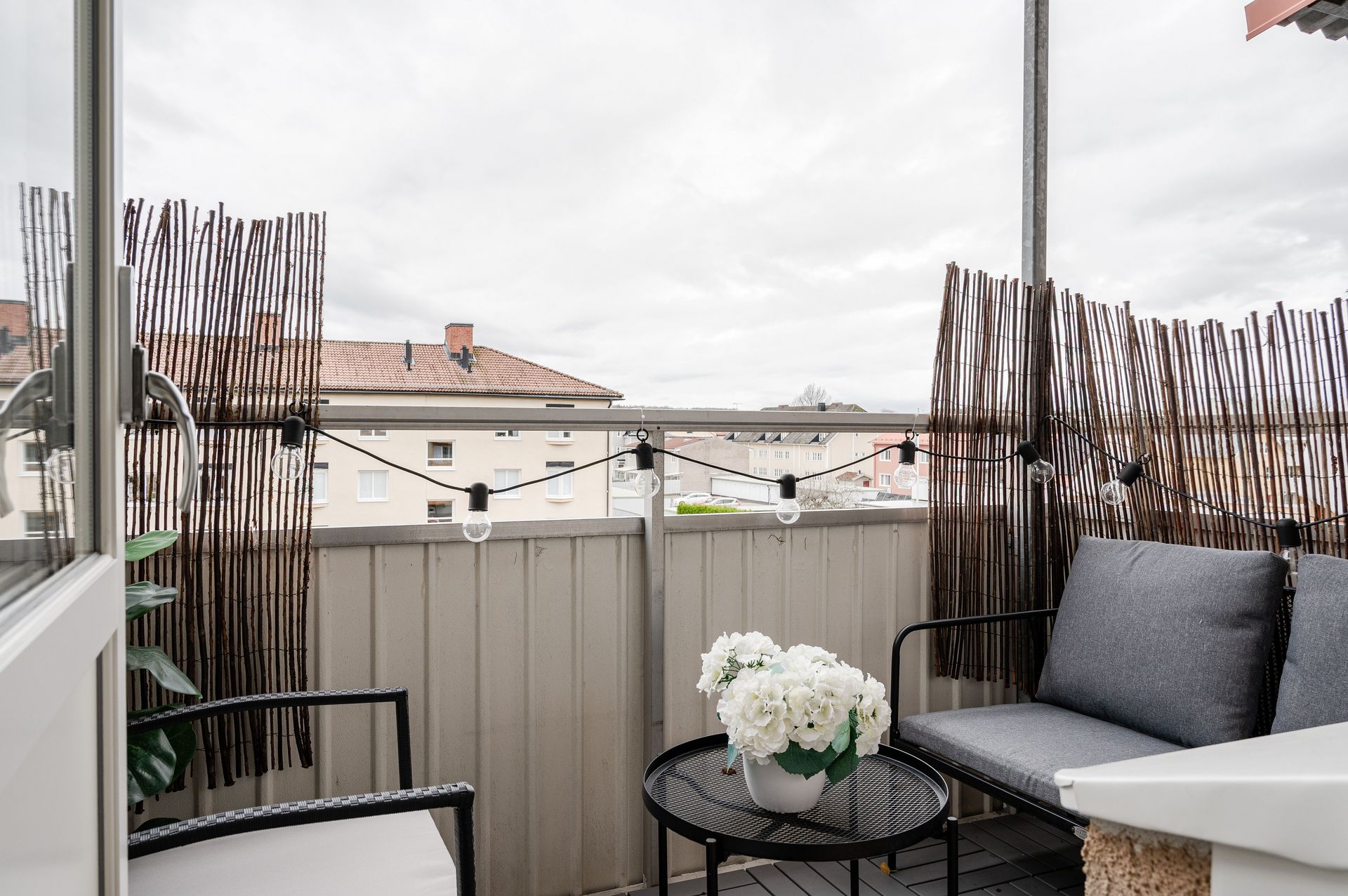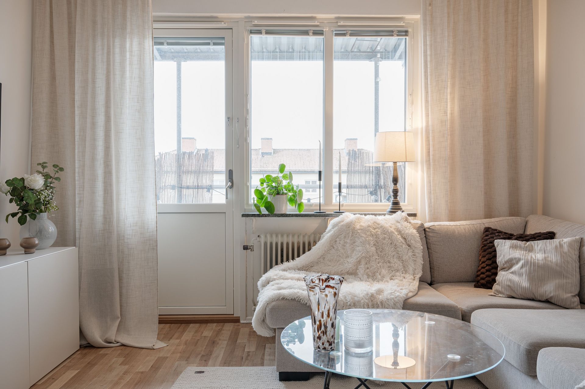 Vardagsrum med utgång till balkong