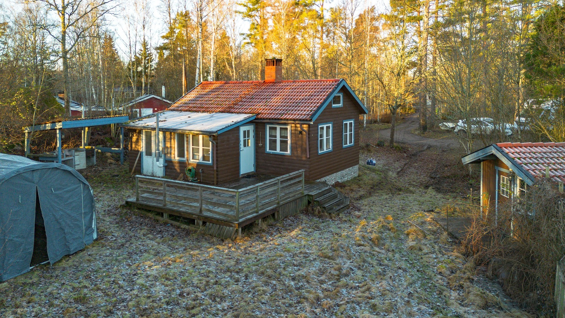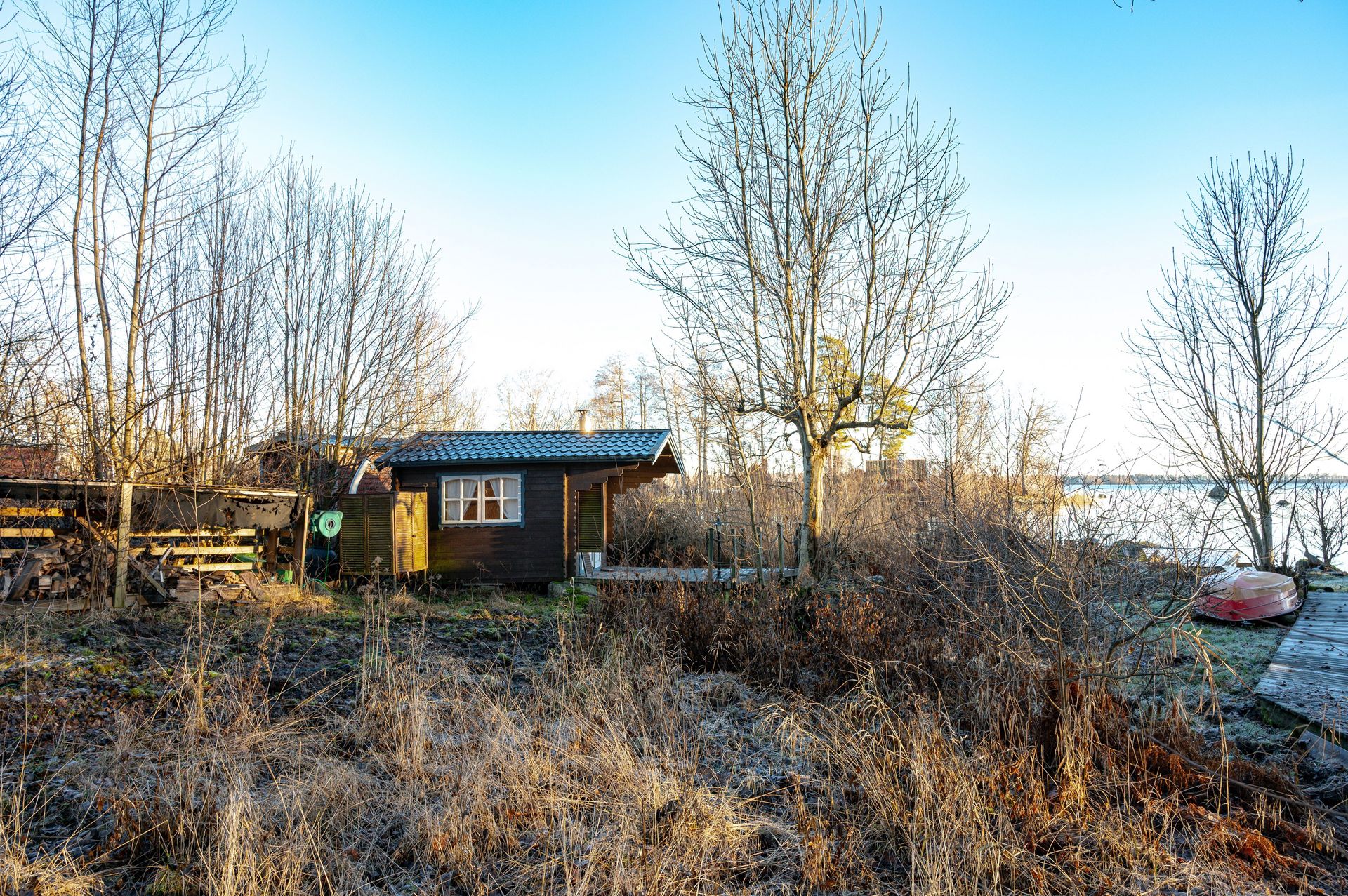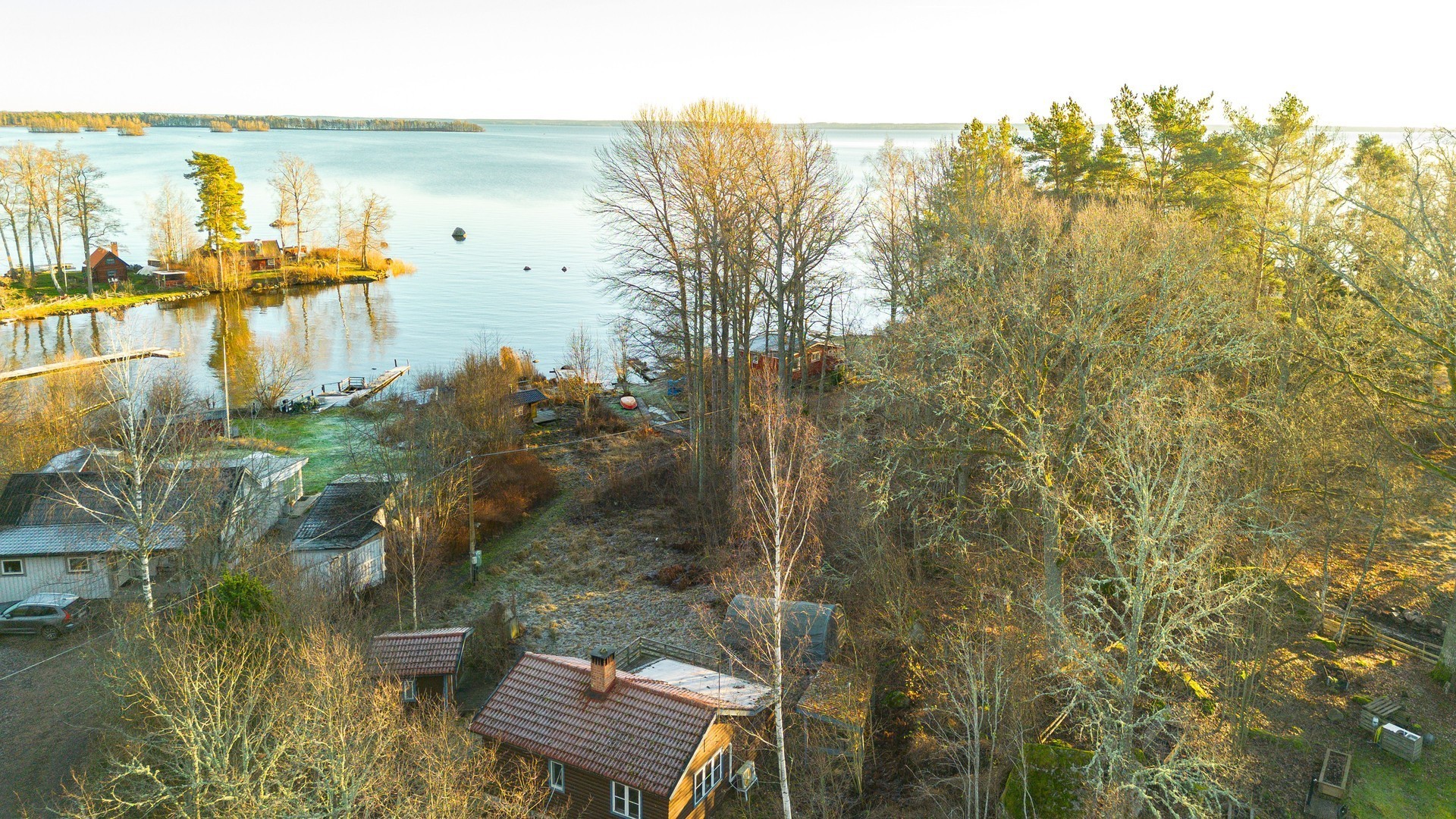 Altan. Trädgård. Bastu vid sjön. Brygga.