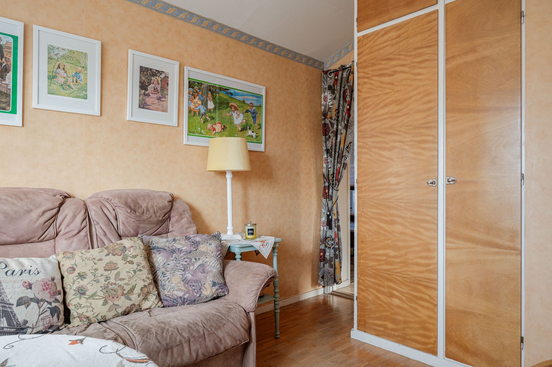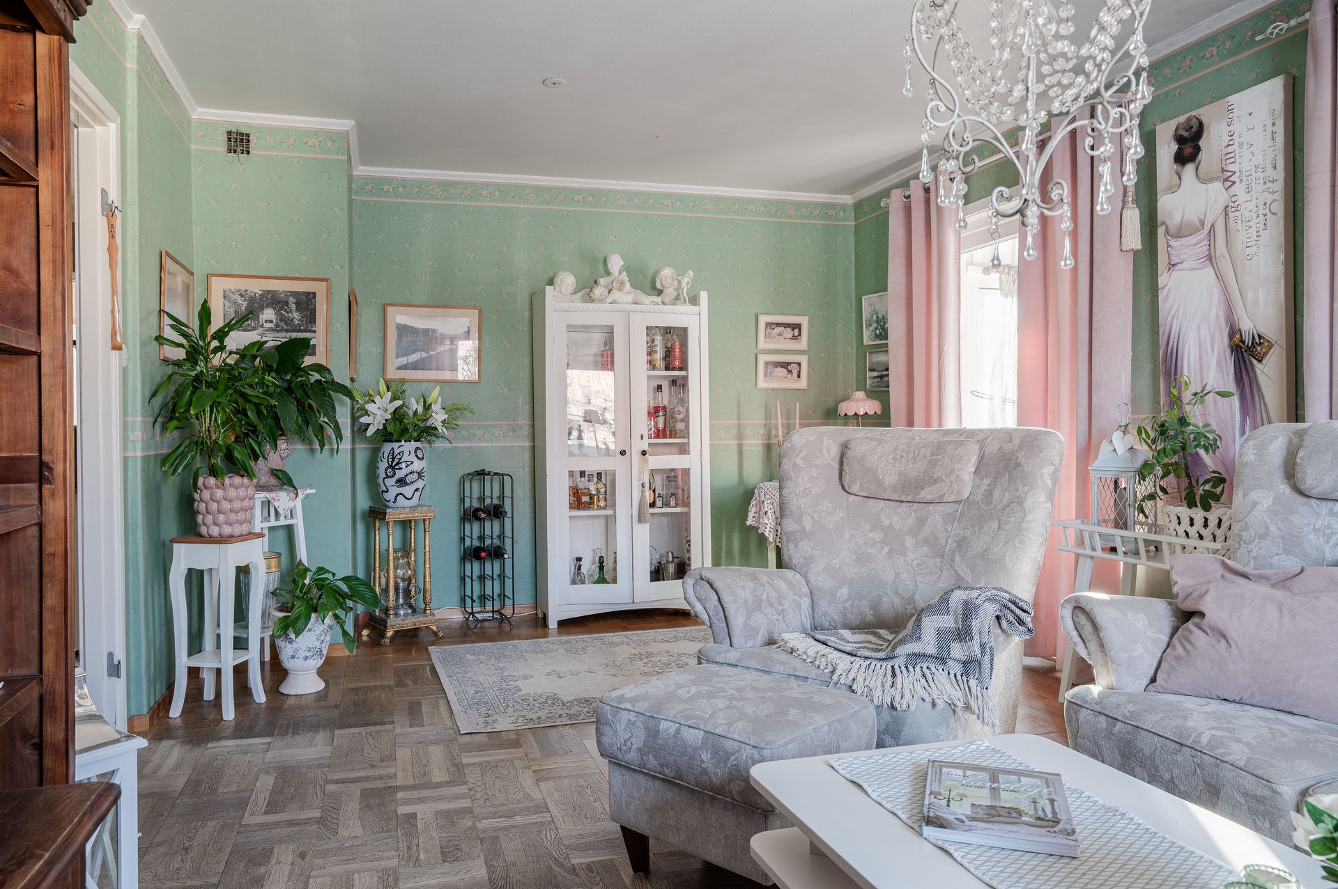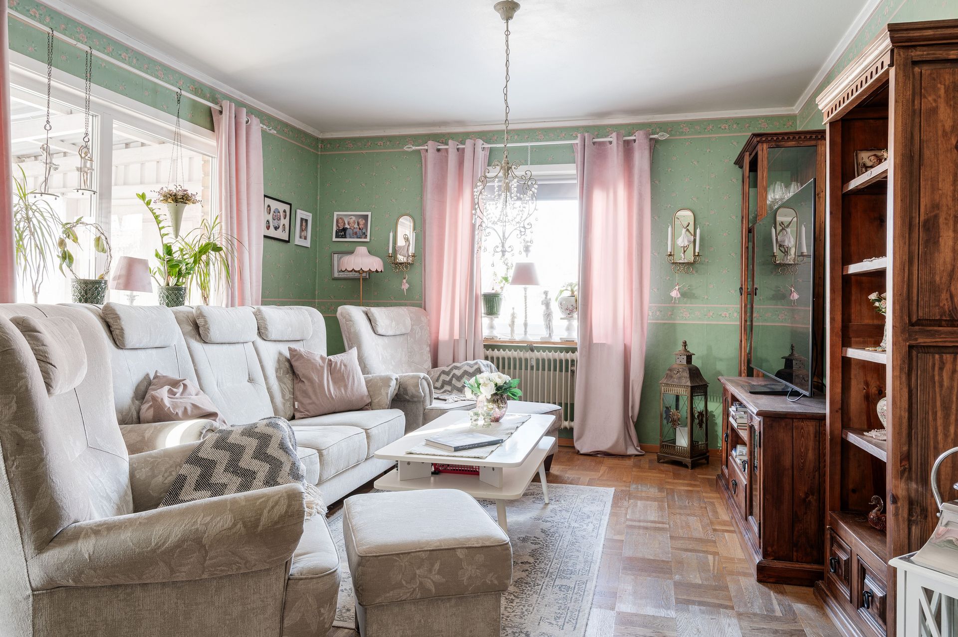 Vardagsrum med parkettgolv