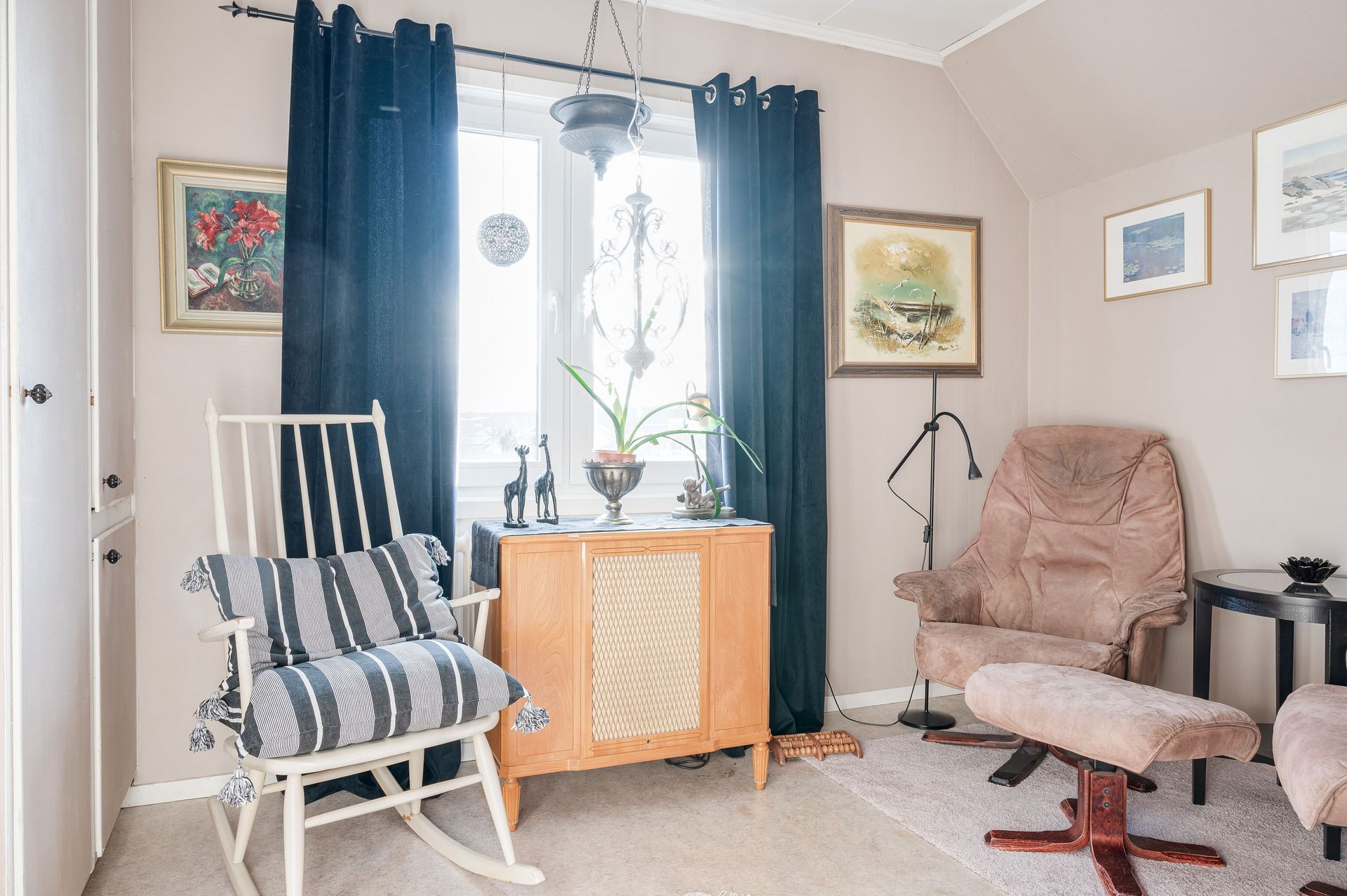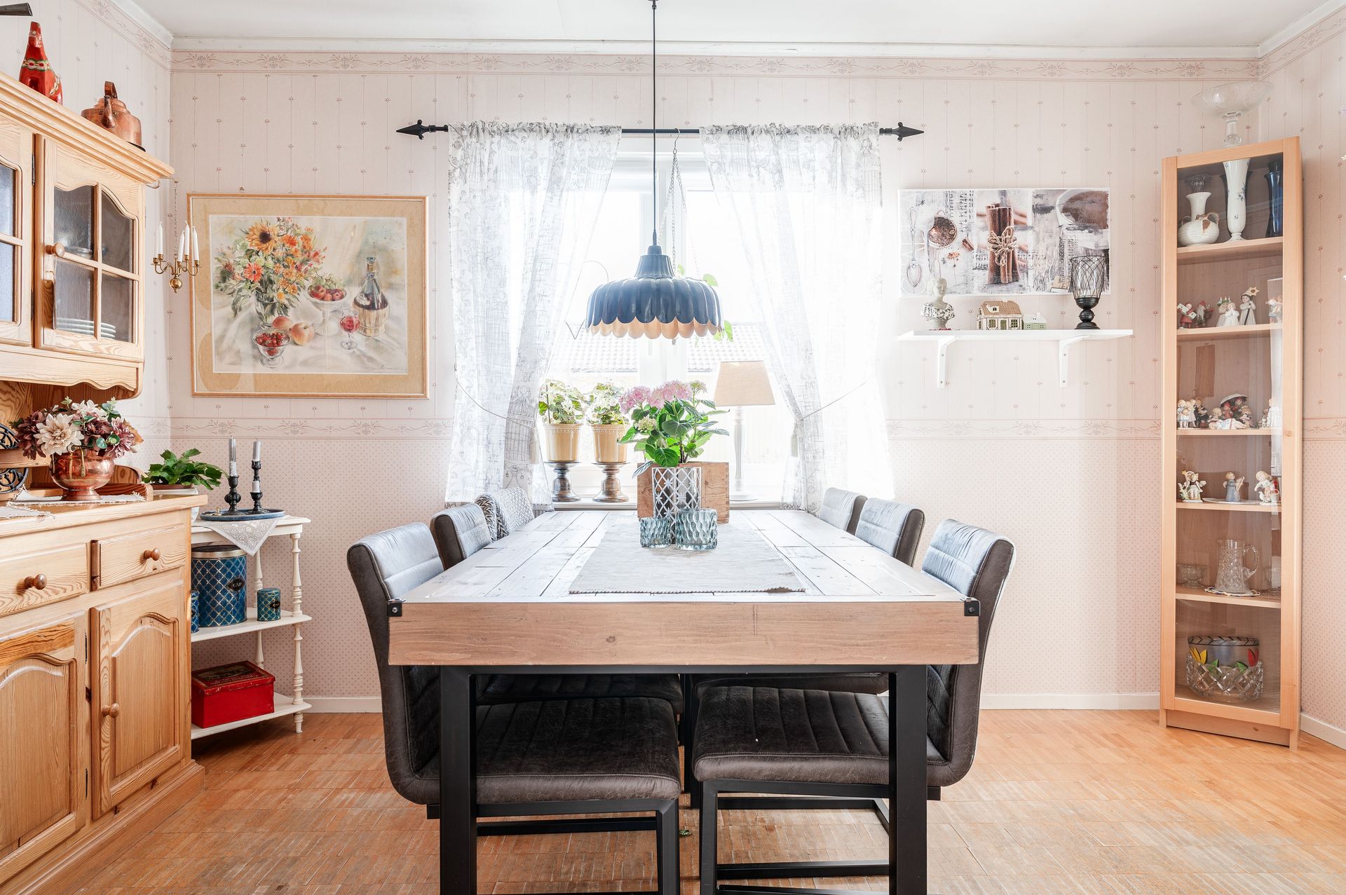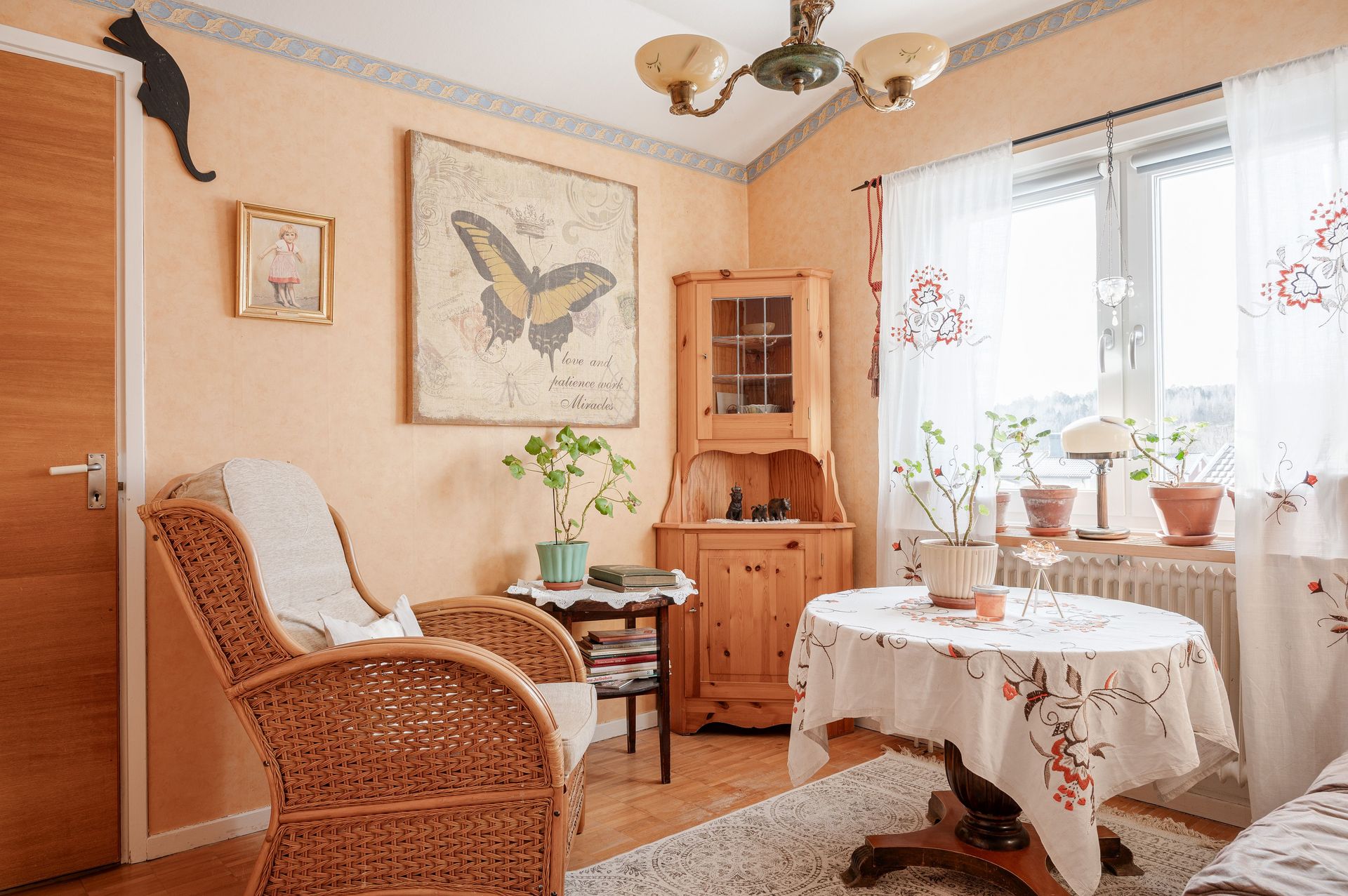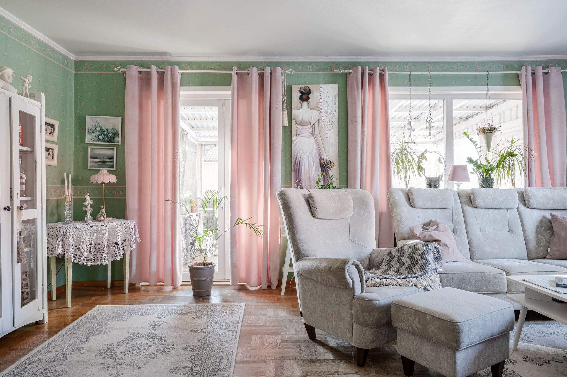 Vardagsrum med parkettgolv