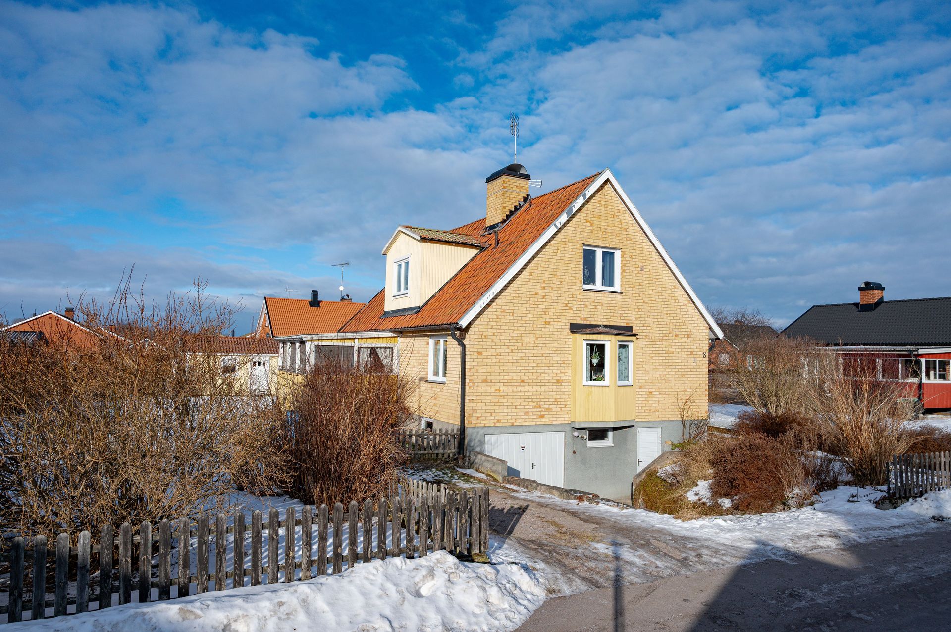 - Parkering: Uppfart med plats för 1 bilar. Garage i källaren.